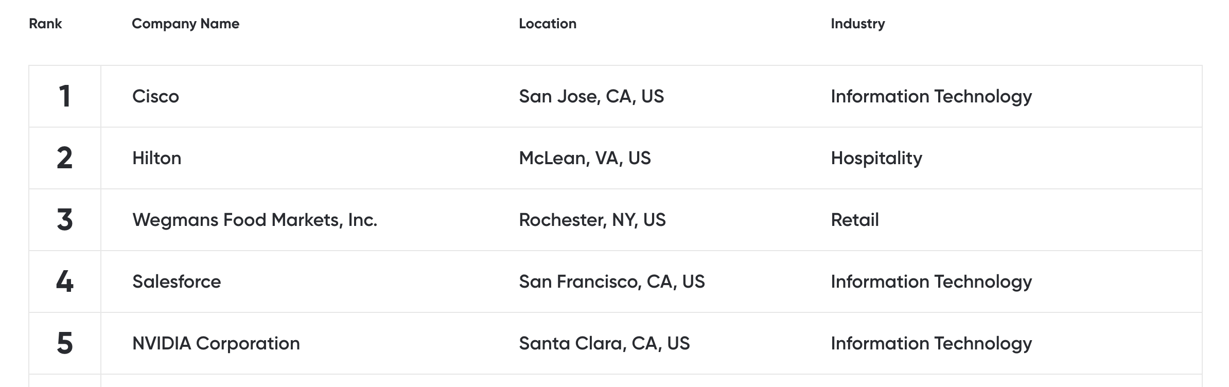 Based on the 2022 Fortune 100 Best Companies to Work For® Cisco is ranked 1st but when making a Share of Search analysis on the top 5 employer brands it becomes clear that the vast majority of talent searching for a cob are looking for opportunities at Sales force. What can Cisco Do? Focus on their cultural benefits such as well being and inclusion and in the short term focus on showing the remote work opportunities.